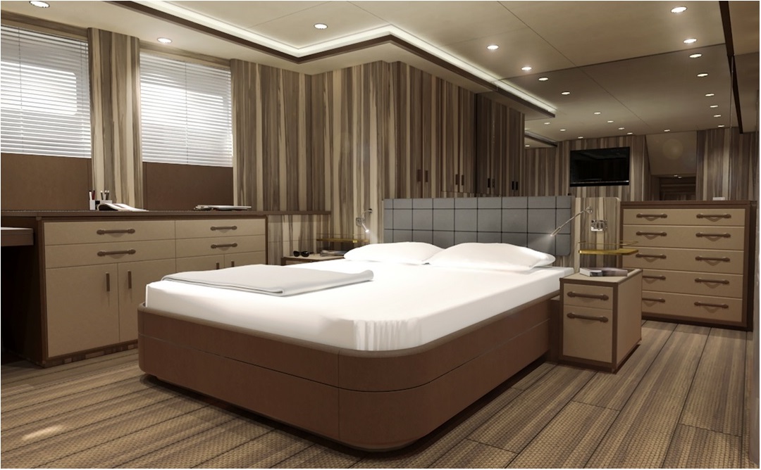 Created by the famous South American designer Simon Hamui and the Italian design studio PFA, the high quality, modern and welcoming interiors of ACALA yacht boast luxurious colors, fabrics, as well as leathers. The lower deck hosts the kitchen and the technical areas of the crew quarters in the bow, as well as an ample sitting and eating area with large windows that provide especially generous amounts of sunlight.