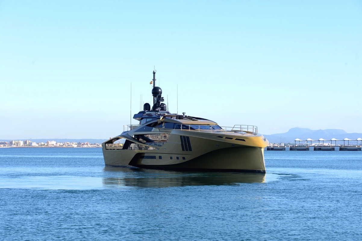 There are some superyachts that never shy away from attention and open yacht KHALILAH is sure to get you noticed on your Western Mediterranean charter: her golden yellow hull and angular profile 49m/169ft will never go unnoticed whether sitting in a berth or cruising off into the sunset at 27 knots.
