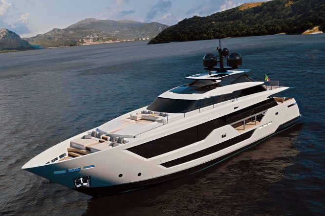 The second superyacht in the Custom Line by naval architect Francesco Paszkowski in partnership with the Strategic Product Committee and Ferretti Group Engineering Department, the Custom Line 106′ is created with the same level of luxury as the Custom Line 120′.
