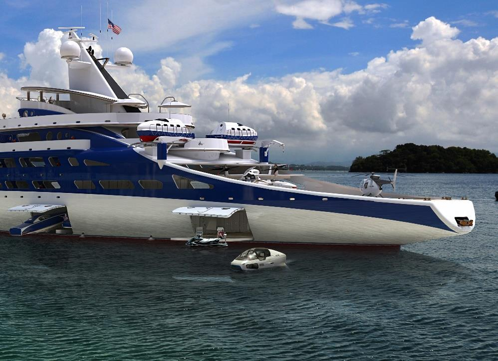 This design concept by Pilotfish Gmbh takes inspiration from the aerial and automotive vessels: The large canopy provides guests with panoramic views of the surroundings and a lightweight double hull system of a composite outer shell and inner carbon fibre body ensures passenger safety by guaranteeing pressure resistance and elasticity in the event of any kind of collision.