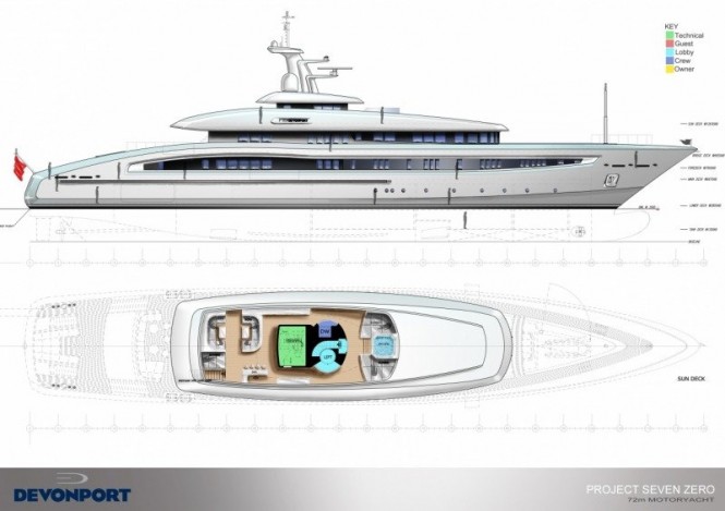 DEVONPORT developed the 72m superyacht SEVEN ZERO yacht design in house with the intention of providing an elegant but flexible motor yacht concept.