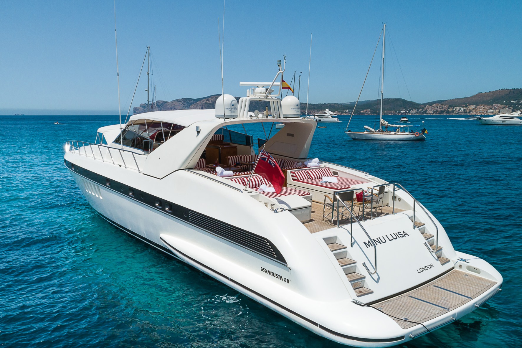 Cruise through the Balearics in the West Mediterranean this summer in style and comfort aboard the Overmarine Mangusta 23m MINU LUISA, and enjoy a 15% discount on the regular rate when booked by the end of May.