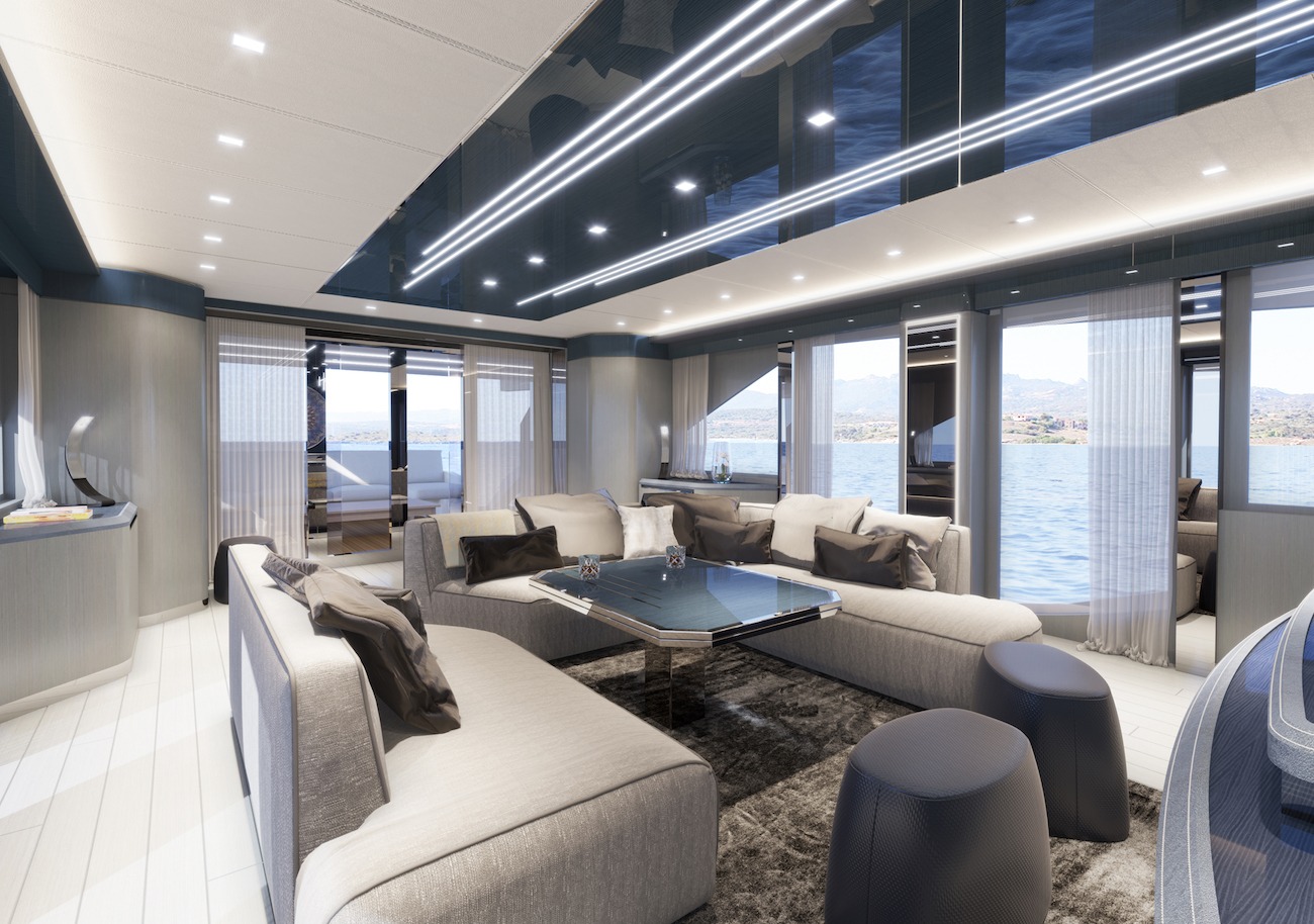 The yacht was designed by Dominator’s in-house design team, led by interior designed by Luca Catino, who also worked for Zuccon and Cassette Design Studios.