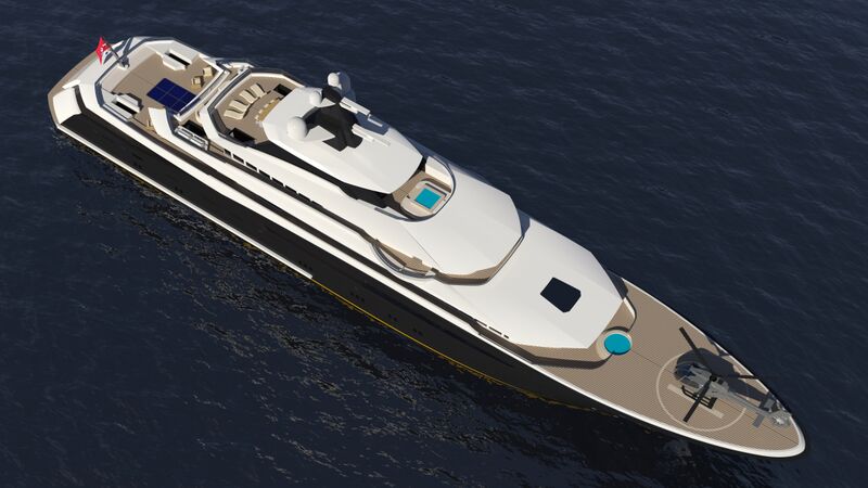 Luxury yacht ARAGONESE concept from above