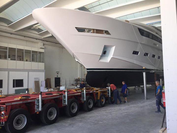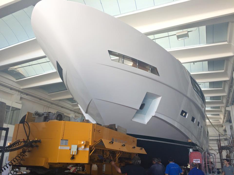 Earlier this month, Dreamline Yachts have released the photos below, showing the new Dreamline 34M yacht, while leaving her shed, ready to be launched. The shipyard’s flagship, the striking Dreamline 34M superyacht has been entirely designed by Enrico Gobbi from Team For Design (T4D). She will be officially unveiled at the 2015 Cannes Yachting Festival in September.