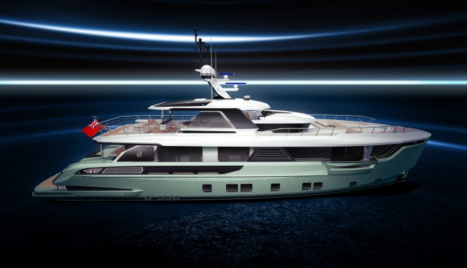 Van Oossanen Naval Architects produced the Fast Displacement Hull Form (FDHF) for the all-aluminium vessel, while the exterior styling is the work of in-house team Dobroserdov Design.