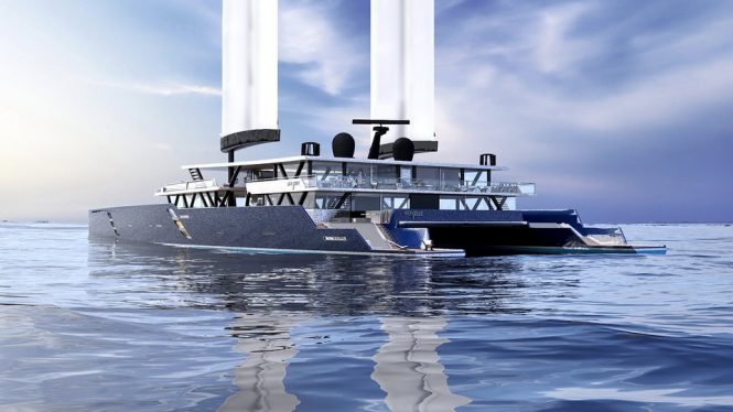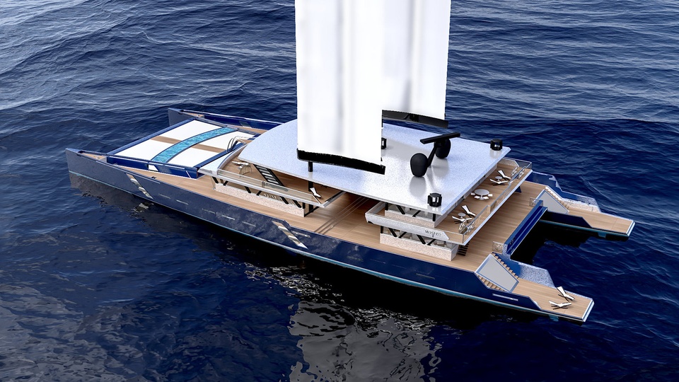 The 68m luxury catamaran concept Merveille 223W was presented by Merveille Yachting in collaboration with VPLP Design. This eco-friendly vessel is capable of staying away from marinas and harbours for a prolonged period of time, while her power comes from a wingsail propulsion Oceanwings® which is fully computer operated.