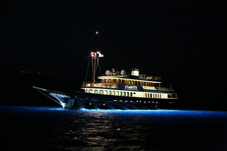 Classic yacht CLARITY by night