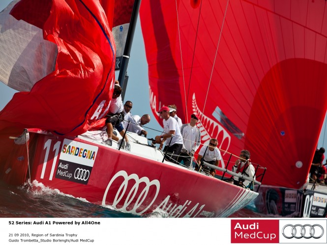 Their Region of Sardinia Trophy Regatta lead after Day 1 on the Gulf of Cagliari may be the smallest possible, but Emirates Team New Zealand (NZL) proved why they are so firmly on course for their second successive Audi MedCup Circuit today when they stretched their overall Circuit lead still further over 2008 champions Quantum Racing (USA)