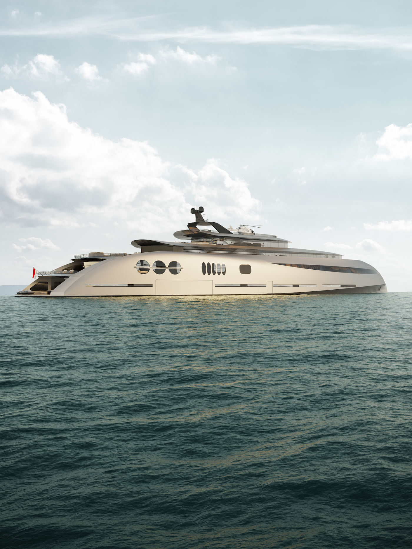 Another unique element in the design is a 360° glass curtain around the Owner’s penthouse, ensuring sweeping views throughout. The helipad on the deck above leads down to the Owner’s deck, making it a hub of social activity.