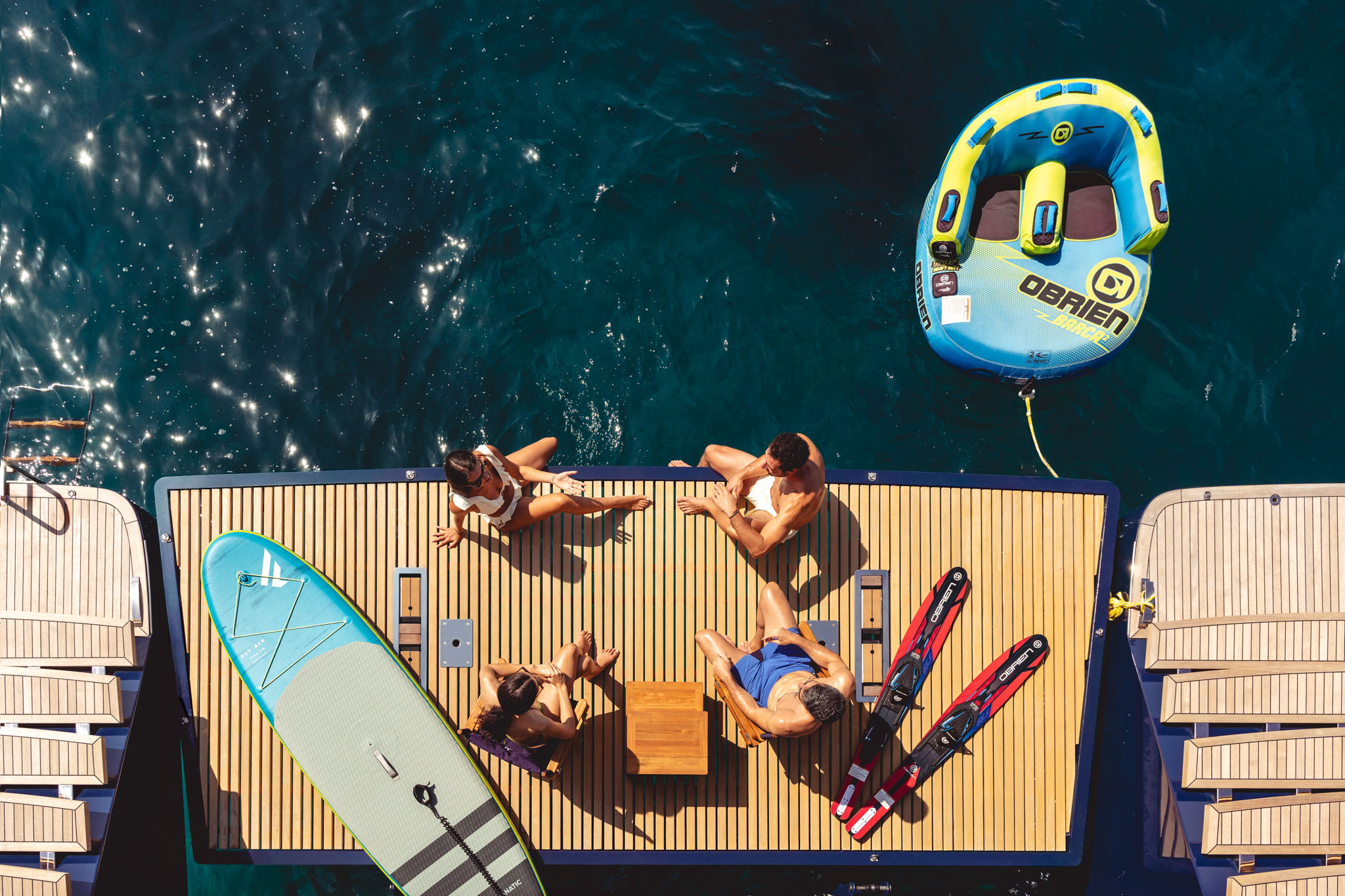 For thrill-seekers, the yacht comes fully stocked with water toys, including paddleboards, kayaks, snorkelling gear, and water skis. Whether exploring vibrant reefs or gliding over crystal-clear waters, guests are guaranteed endless adventure.