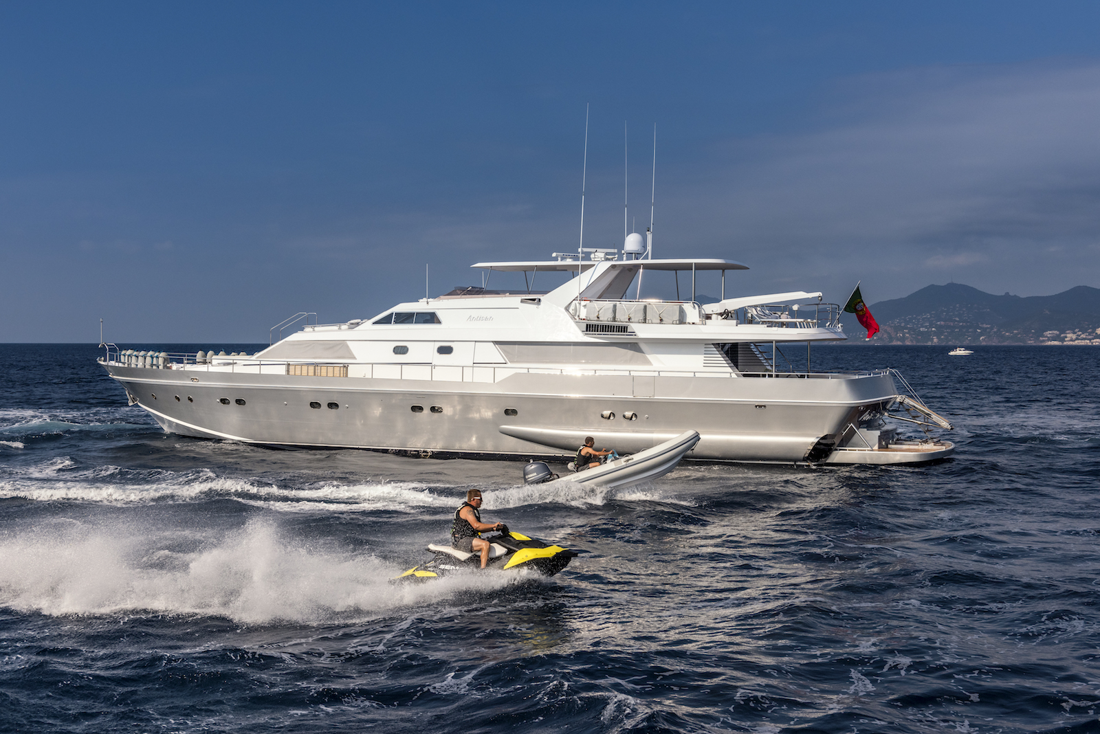 A fabulous vessel throughout, luxury yacht ANTISAN, measuring 33 metres, offers not only unforgettable yacht charters throughout the entire Mediterranean, but she is also perfect for event charters thanks to her base in the Port of Cannes, adjacent to the Palais de Festivals. And what more!? She is also licensed to charter in Western Mediterranean‘s Spain and the Balearic Islands.