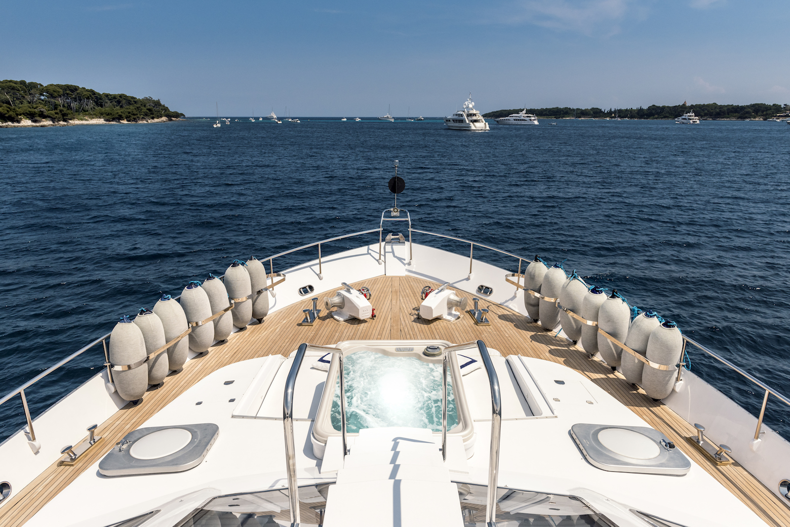 The large outdoor areas include a fabulous aft deck with a table that seats up to twelve charter guests and offers a fantastic al fresco dining experience, with mouth-watering dishes prepared by the yacht’s talented personal Chef.