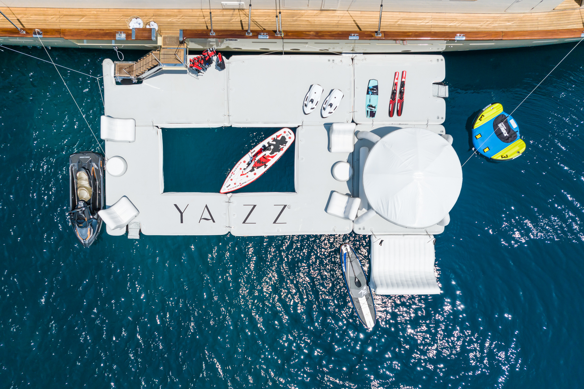 For those seeking adventure or relaxation, the yacht’s extensive collection of water toys and onboard amenities caters to all ages and group configurations. Whether enjoying the thrill of water sports or relaxing under the sun, she delivers an exceptional charter experience.