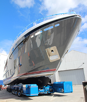 Princess 35M superyacht Hull no. 1 leaving her shed – Photo by Princess Yachts International plc