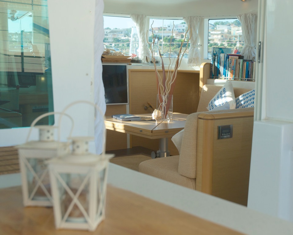 “OMBRE BLU (Italian for Blue Shadows) is a Lagoon 500 Catamaran.  MCA commercially registered and flying the British flag, she is the perfect vessel in which to cruise in absolute comfort and safety. The main advantage of the catamaran, over a monohull is its stability, which is due to its width.  It is really like a beautiful floating apartment. She is light, modern and airy. She sails wonderfully and does not heel-over like a monohull, which means that you can enjoy all the same comforts of land on the sea (such as drinking from our beautiful hand-made wine glasses from Venice!).”