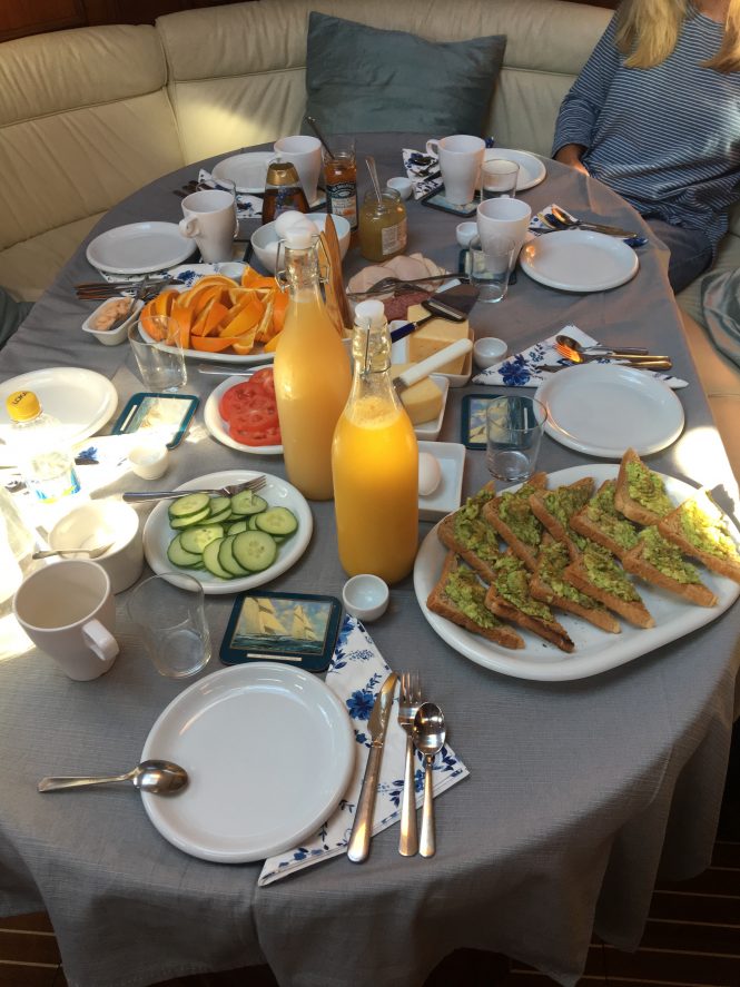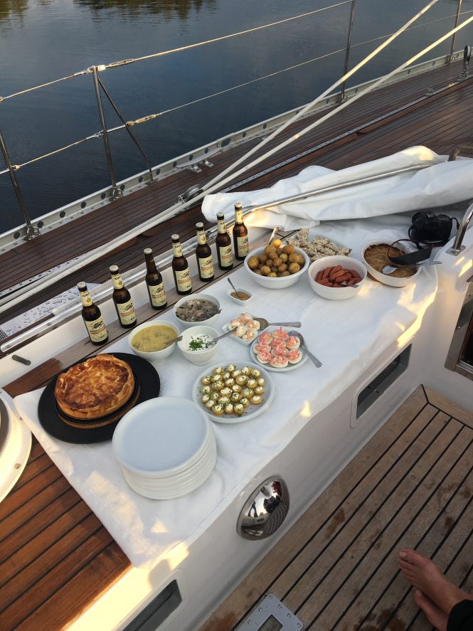 A vital element in any trip is the food and meals on board. Kerstin’s creations were delicious, varied and smartly presented. She baked most of the bread that she served us and made sure that breakfast was different every single day. Sailing can be hard work, and these superb meals and snacks (« fika ») are definitely earned!