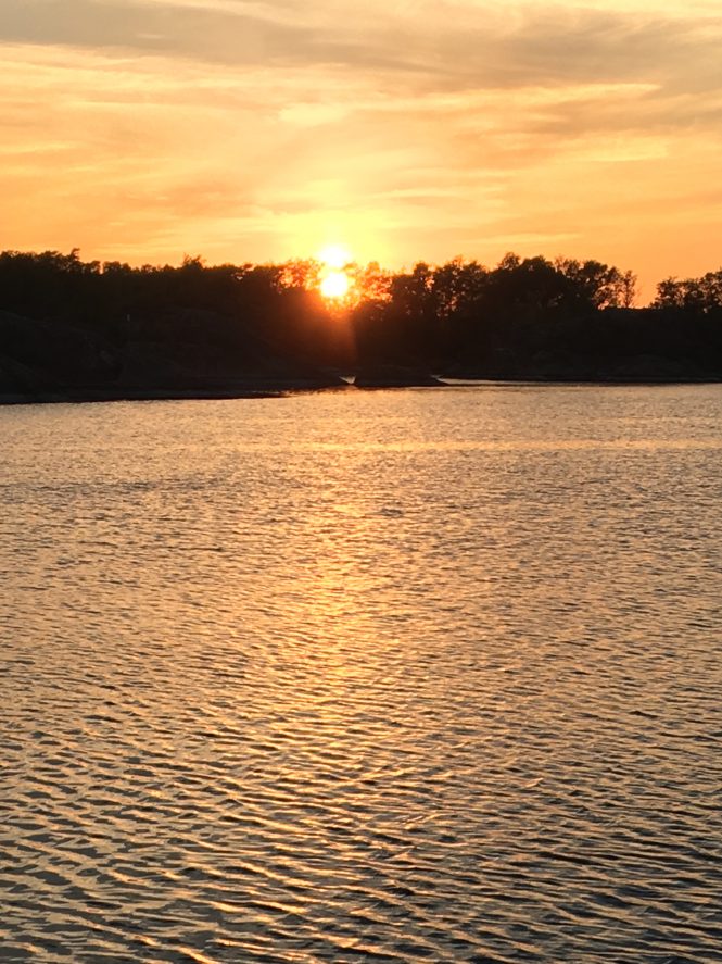 This chosen sailing ground is 24,000 islands of the Stockholm archipelago, and we honestly had relatively little idea what to expect in terms of sailing, swell, wind, and general beauty. It is a truly stunning and wonderfully picturesque place to sail, with a greenness that offsets the blue of the Baltic and the profusion of rocks, all bathed in a northern light that perhaps rivals the Côte d’Azur. Sunsets are something to behold…