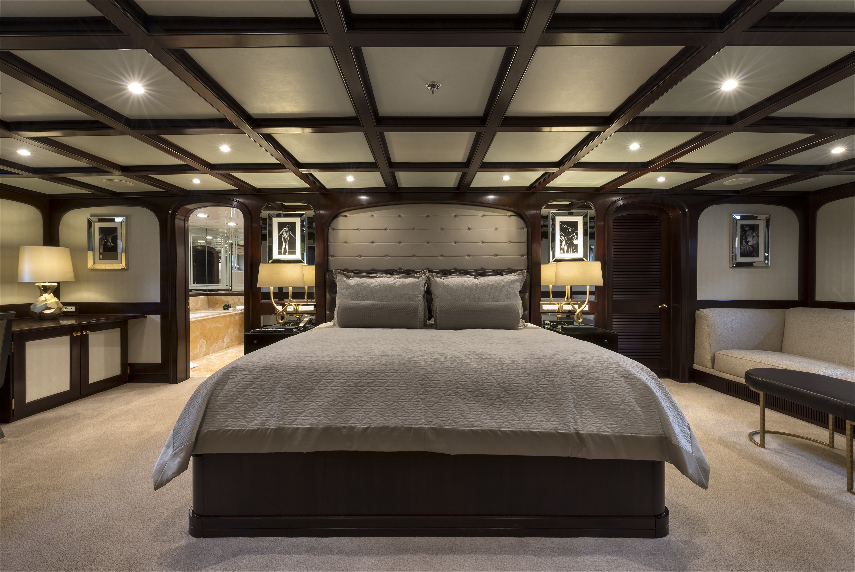 Since the 2016 refit, the main deck forward has changed from an observation room to become the second VIP suite. Here the occupants have a gorgeous light-filled space thanks to the skylight panels arranged in a semi-circular formation, and at night these can be left open for stargazing or covered for complete privacy.