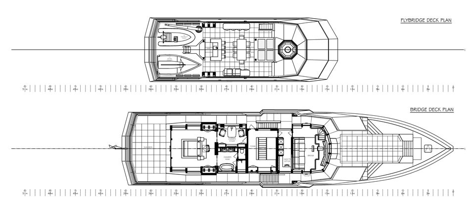 • Tri-deck Passagemaker with full width owner’s stateroom located aft on the bridge deck.