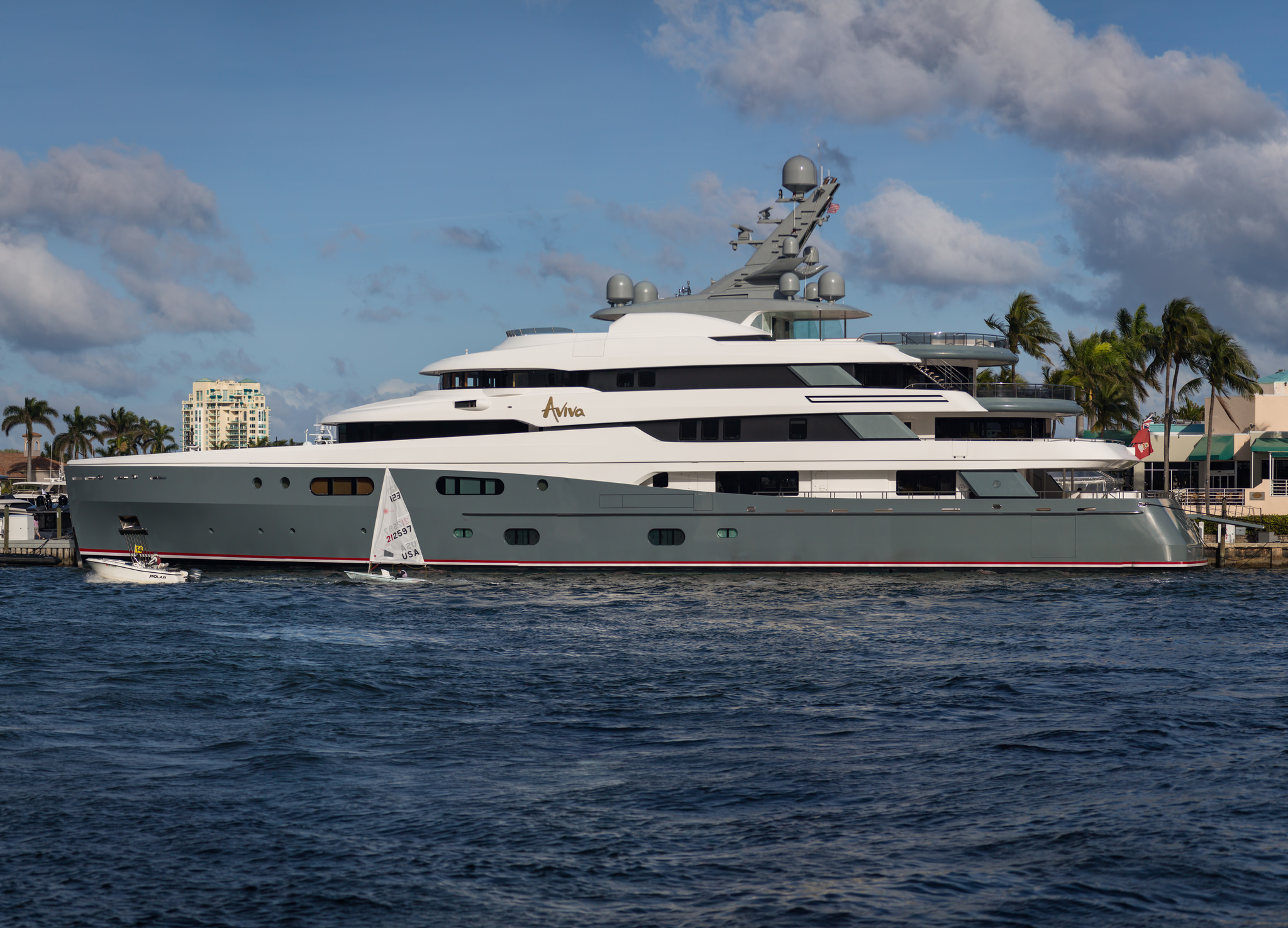 Captured on camera at Fort Lauderdale, Florida, M/Y AVIVA (ex.AVIVA III) from Abeking & Rasmussen was built in 2007 and has cruised the charter grounds of the Mediterranean as well as the Caribbean & Bahamas. This 68m/223ft vessel has 7 staterooms to sleep up to 16 guests, who are looked after by a crew of 25.