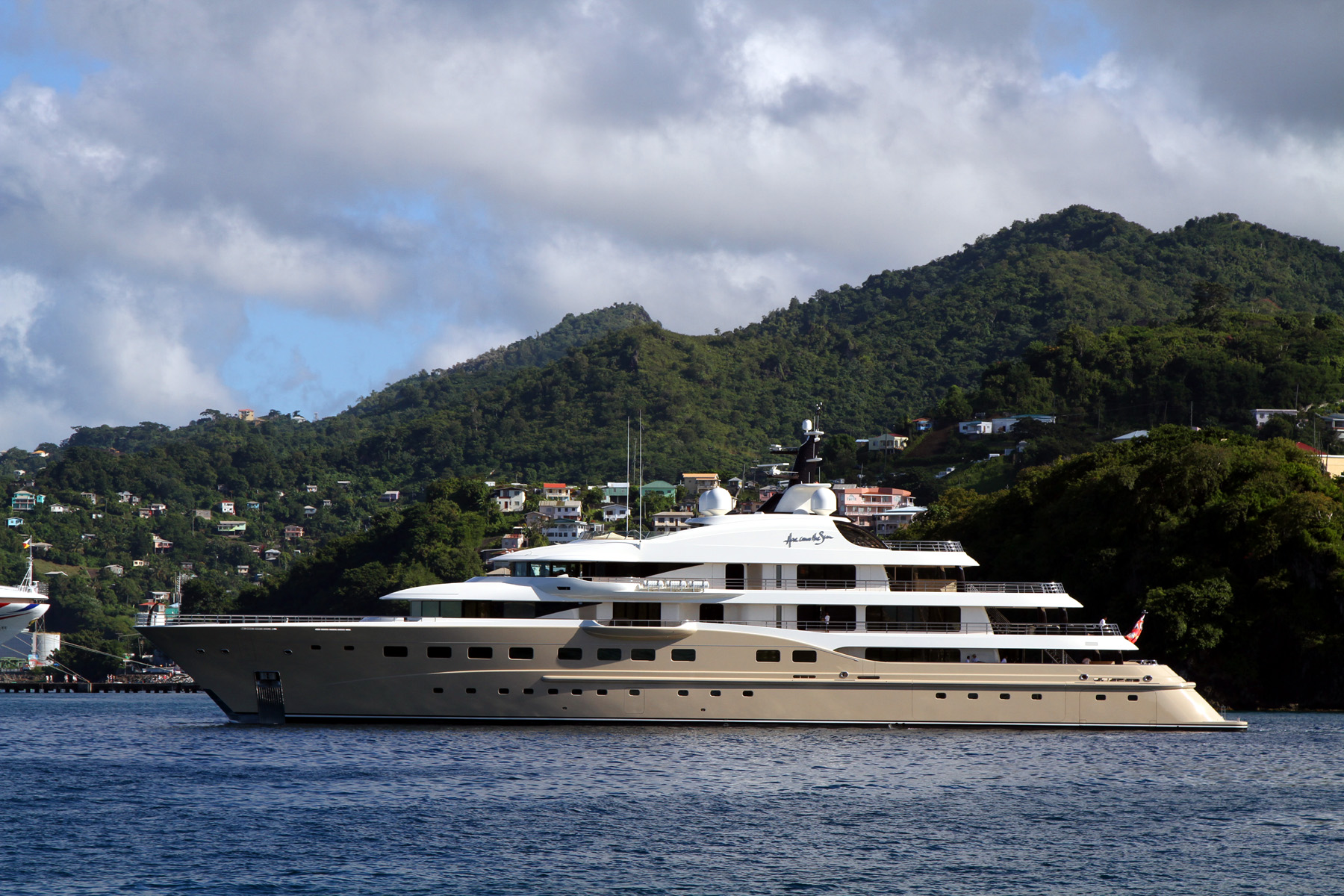 Popular award-winning luxury charter yacht HERE COMES THE SUN was photographed in the Grenadines in late November and she continues to draw attention in the Caribbean with her striking champagne hull. Inside, her breath-taking Tim Heywood interiors are ready to receive guests and visitors to mark a special occasion and there is a wealth of amenities to keep everyone busy, including a cinema, Jacuzzi, pool and beach club with spa facilities and gym.