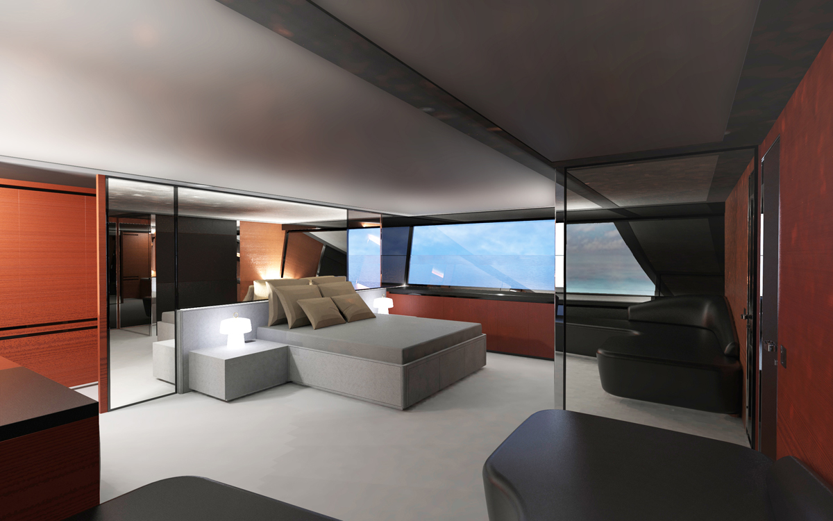 The new shipyard from designer Manuela Lucchesi and naval architect Marco Arnaboldi has created an open yacht capable of more than 60 knots, and a cruising speed of over 50 knots. The low-resistance hull form is a sandwich composite construction 30% lighter than open yachts of a similar size. Furthermore, the CENTUONO FORZA produces 50% less CO2 emissions by using three MAN 12V 2000hp engines coupled to next-generation MJP waterjets. At her cruising speed of 50 knots, Owners have a range in excess of 500 nautical miles, making her an ideal yacht for those on the go.
