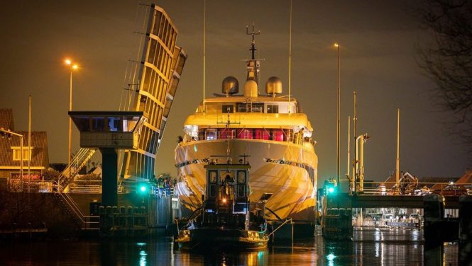 Feadship charter superyacht ARROW is currently cruising through the Dutch waterways to the open sea in preparation for her North Sea sea trials.