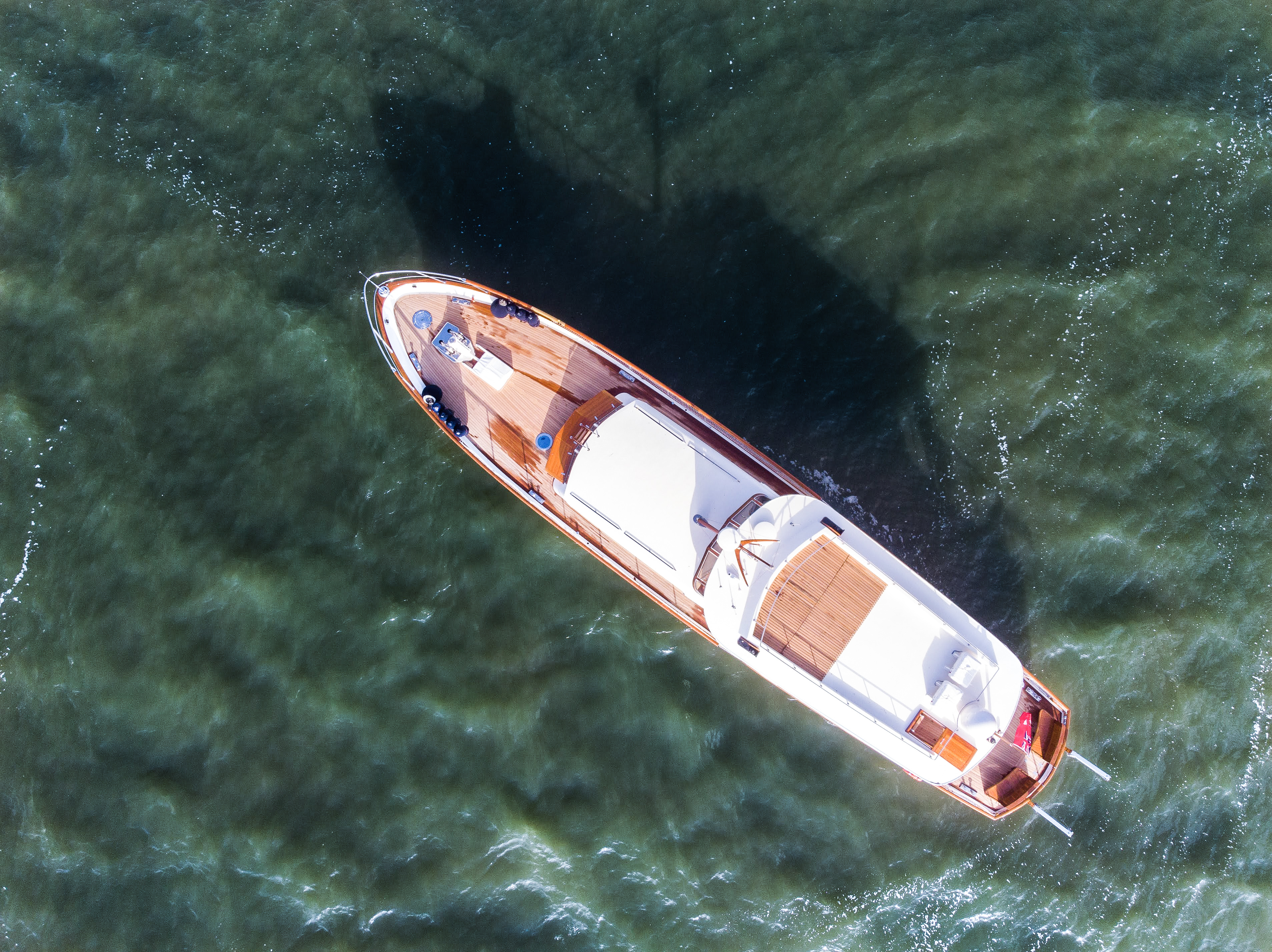 CARAVELLE had previously been altered by her Owners to include a lazarette and swim platform, increasing her length by 1.5m/4.9ft. These changes were not adverse to the design, which kept its soft curves, warm teak decking with polished chrome accents and an alluring blue hull.
