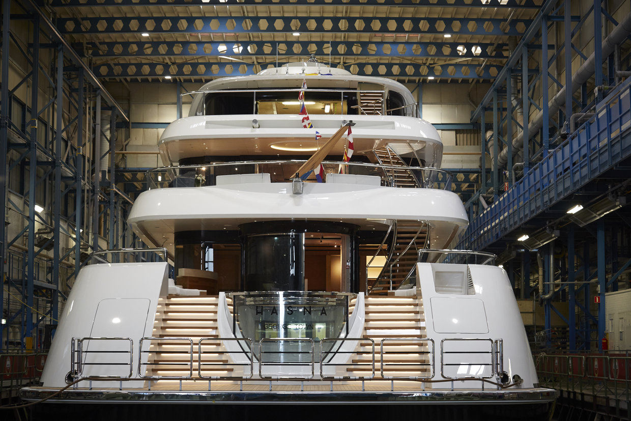 Feadship announced the launch of the new 73-metre luxury superyacht for an Australian client. The imposing motor yacht was named Hasna and hit the water last week in Holland. Hasna was designed by Redman Whiteley Dixon to meet the requirements of the very experienced owner, who’s idea was to create a family-friendly yacht design.