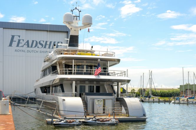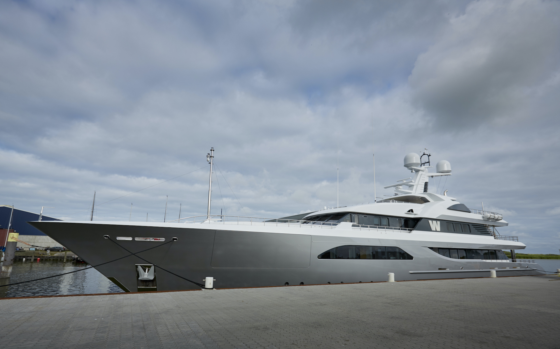 Luxury yacht W (ex.LARISA) has emerged from the Feadship refit facility in the Netherlands showing off a beautiful new metallic hull among other new exterior and interior refit features.