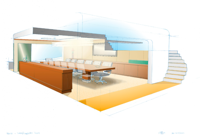 Feadship Breathe Yacht Concept - The main dining room is situated forward on the main deck and can easily be converted into a conference room