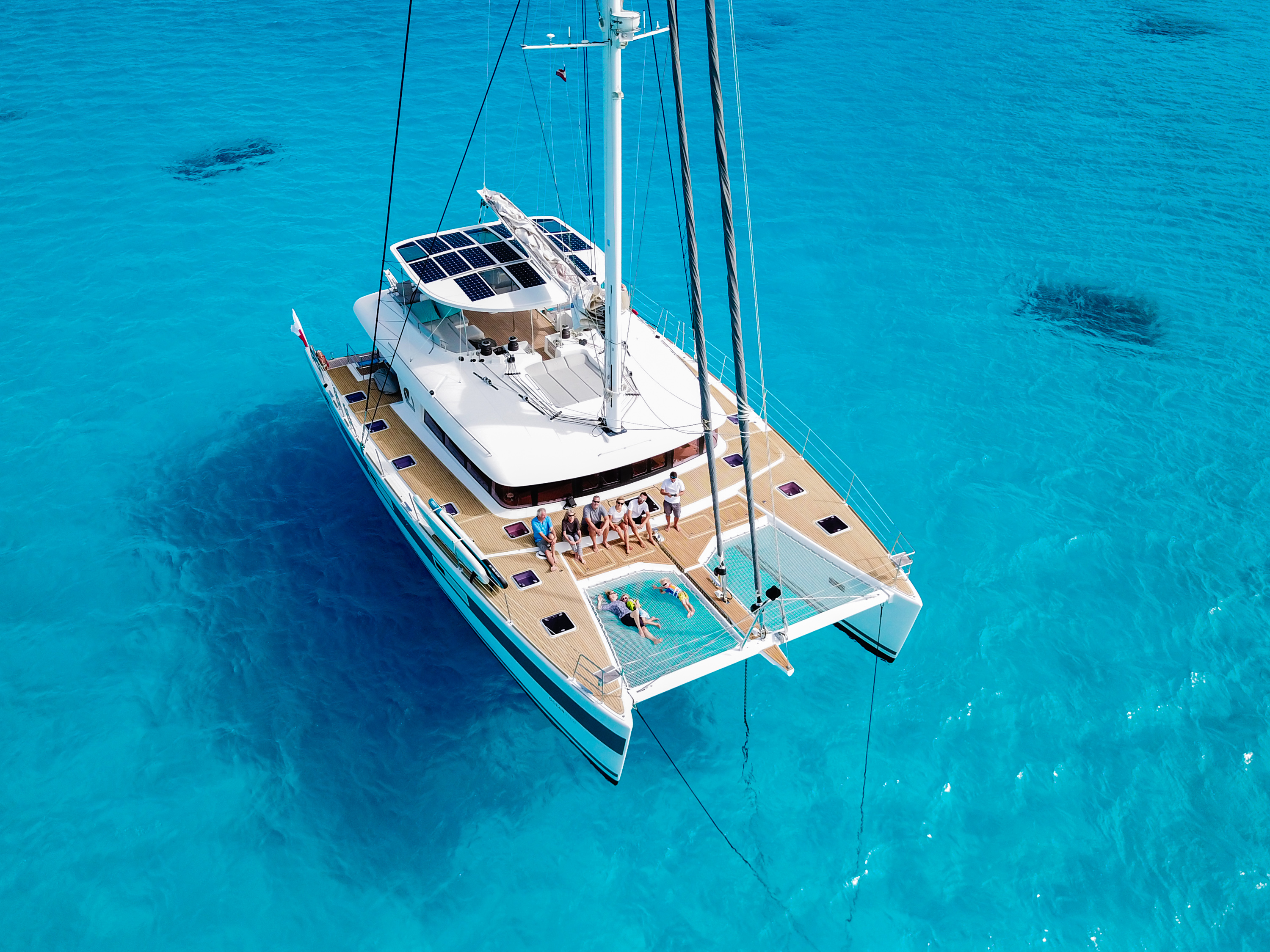 At 18.9m/62ft, this Lagoon 620 model is ideal for family holidays of up to six guests or for couples who want to spend as much time as possible out on the water and among the islands. Ocean View has a highly professional and friendly crew of two, including Captain Matt and Chef Krystyna. Your group will be welcomed to inviting social spaces and luscious culinary creations prepared by Chef Krystyna, also a qualified yoga instructor, able to give advice on nutrition and natural therapies if desired.