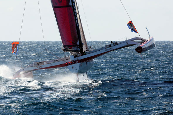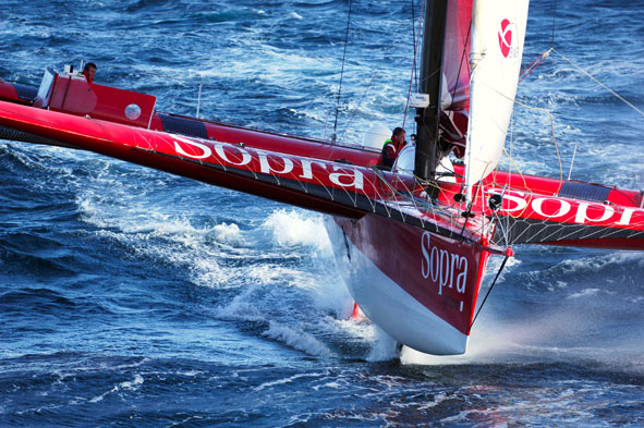 Yacht SOPRA trimaran is an ORMA 60’ trimaran and she belongs to the very exclusive racing sailing yacht group in being able to reach speeds exceeding 40 knots.