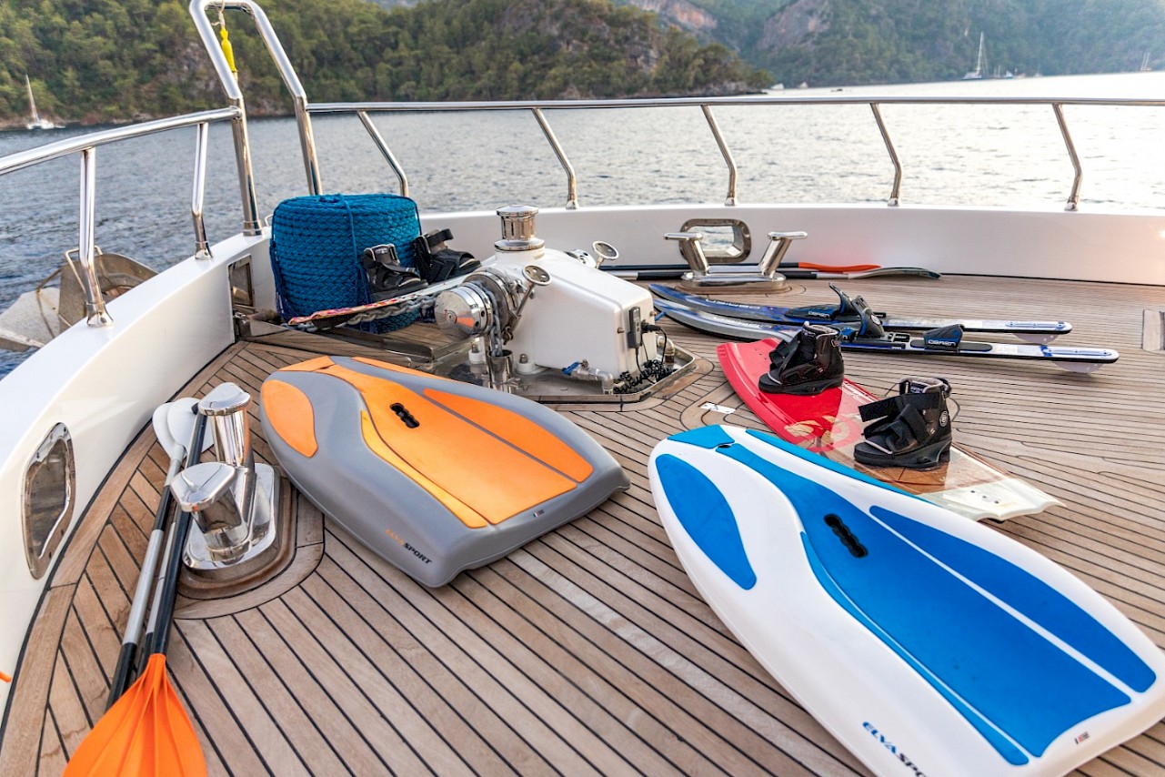 The current selection of water toys includes two canoes, paddleboards and kiteboards for exploring along the Turquoise Coast and marvelling up close at the Lycian Tombs and tranquil seaside villages along the way.