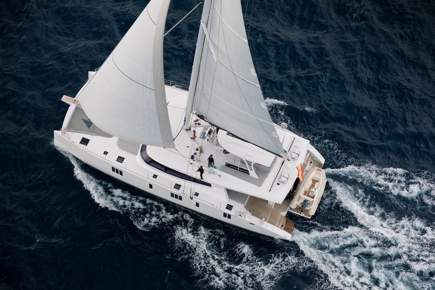 Built by popular catamaran shipyard Sunreef Yachts, 22.6m/74ft S/Y CALMAO benefits from their reputation and expertise to efficiently use the space onboard while catering to the modern Owner and charterer. The gorgeous interiors are minimalist, letting the brilliant turquoise blue of the sea command your attention while ensuring that you have a comfortable and serene place to rest and recharge after your travels. The audio-visual entertainment systems are top-notch so that the kids are entertained while parents sunbathe or catch up on the latest events.