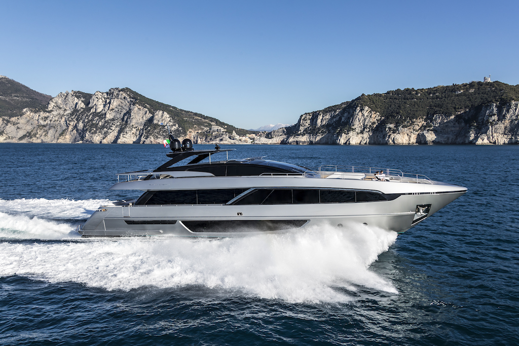 Riva 100′ Corsaro reaches a maximum speed of 27.5kn, thanks to her twin MTU 16V 2000 M93 engines.