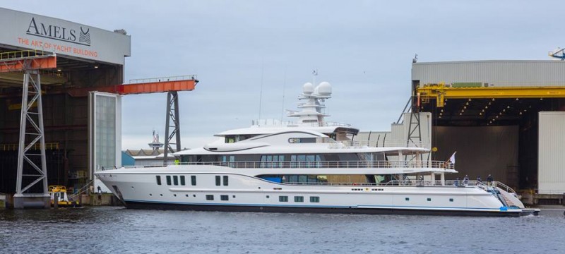 The highly respected Dutch shipyard, AMELS, has shared the photo of the first AMELS 242 superyacht Project FREEFALL on their social media. This impressive 73,50 metre vessel arrived at the shipyard in Vlissingen in October 2014. It has been now relocated to dry dock number 2, where the first AMELS 272 is also in build. Due to be delivered later this year, AMELS 242 is a large volume yacht of 1,725 gross tonnes.