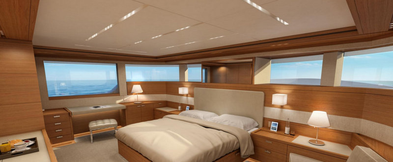Martino and his team have also worked on the evolution of the layout. “We helped refine the general arrangement together with the structural engineers, the experts at Moonen and the exterior designer Rene van der Velden. This assured that the interior design matches the external aesthetic for instance, in placing the windows in the master suite which offer splendid views from within and charm to the exterior profile. We love the exterior design of the Martinique and its ingenious use of light.”