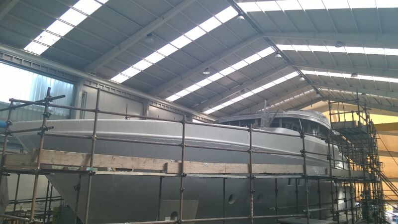 Construction of the first SD35 motor yacht GIPSY is currently well underway at the Genoa-based shipyard Otam, reporting a 30% completion of this exciting new project. The hull of the 35-metre superyacht GIPSY has been successfully finished, with her superstructure also nearing completion. Propulsion systems and generators have been also installed.