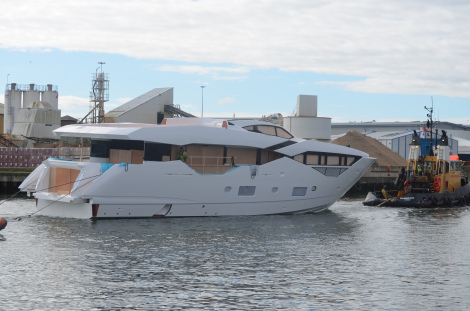 Sunseeker London has proudly unveiled the first images of the new ‘Sunseeker 116 Yacht’ motor yacht Hull no. 1. The photos show the first Sunseeker 116 Yacht as she reaches the Sunseeker International shipyards in Poole, Dorset, UK for first stage fit out.