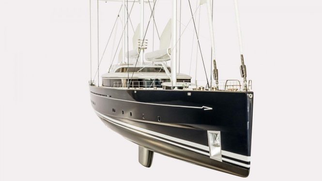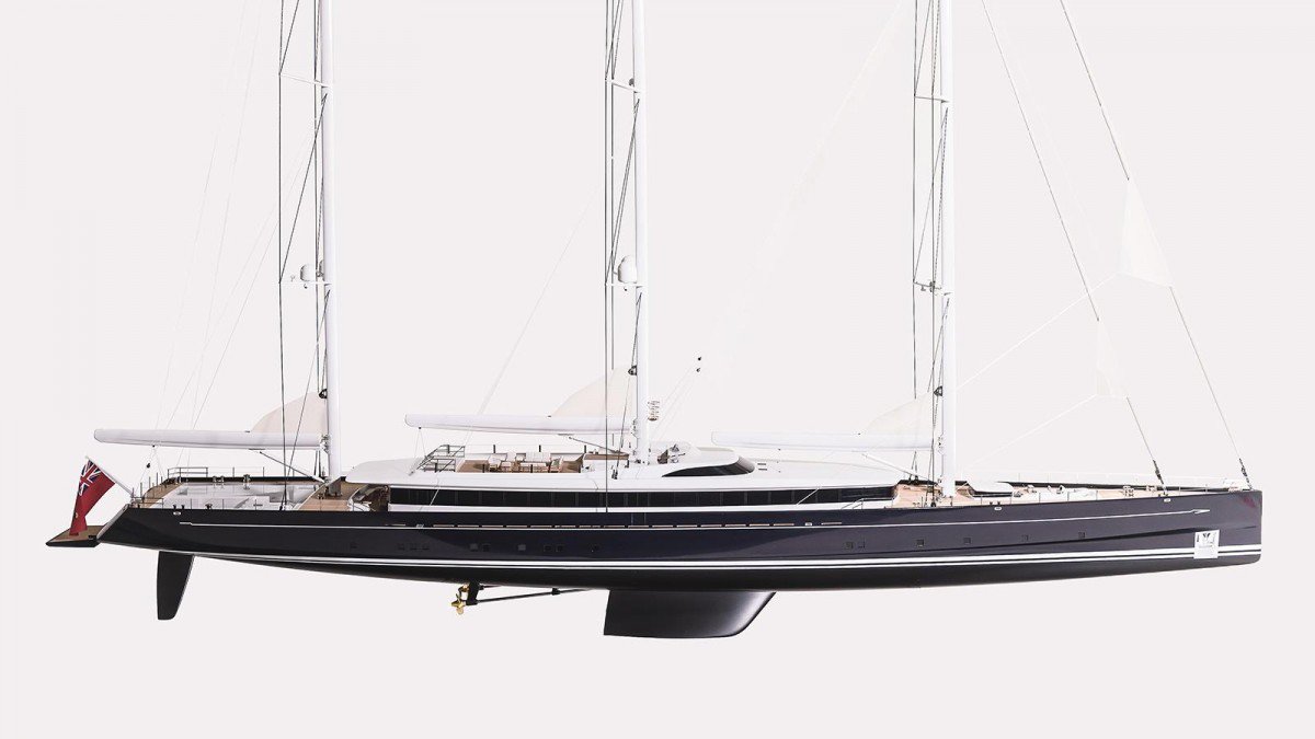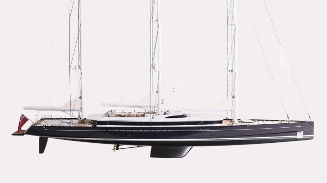 The naval architecture from Dykstra Naval Architects incorporates a plumb bow, three masts and carbon rigging by Rondal. Once launched in 2020 she will become one of the world’s largest sailing yachts, the largest sailing yacht in aluminium and the largest Asian-owned superyacht.