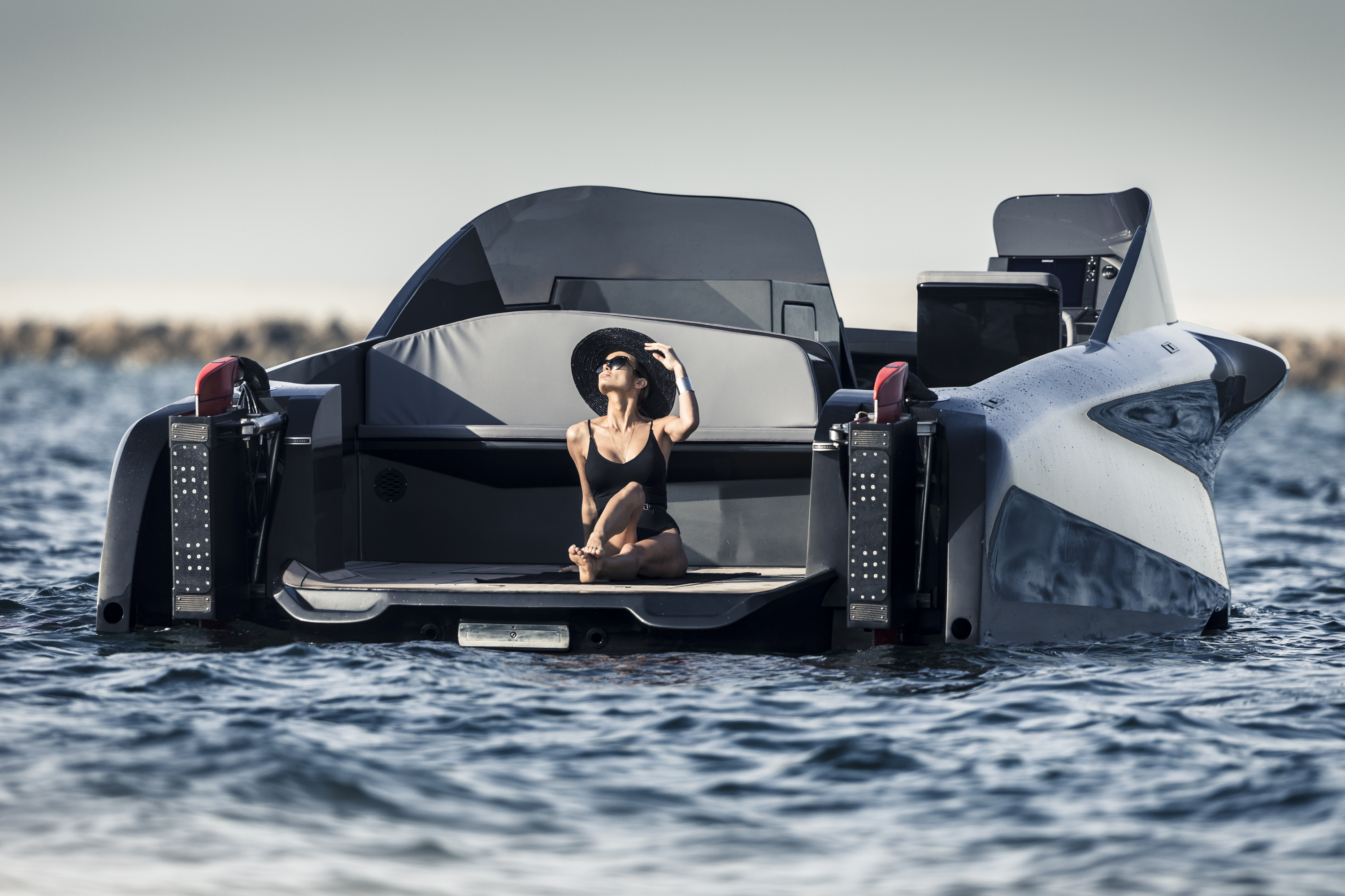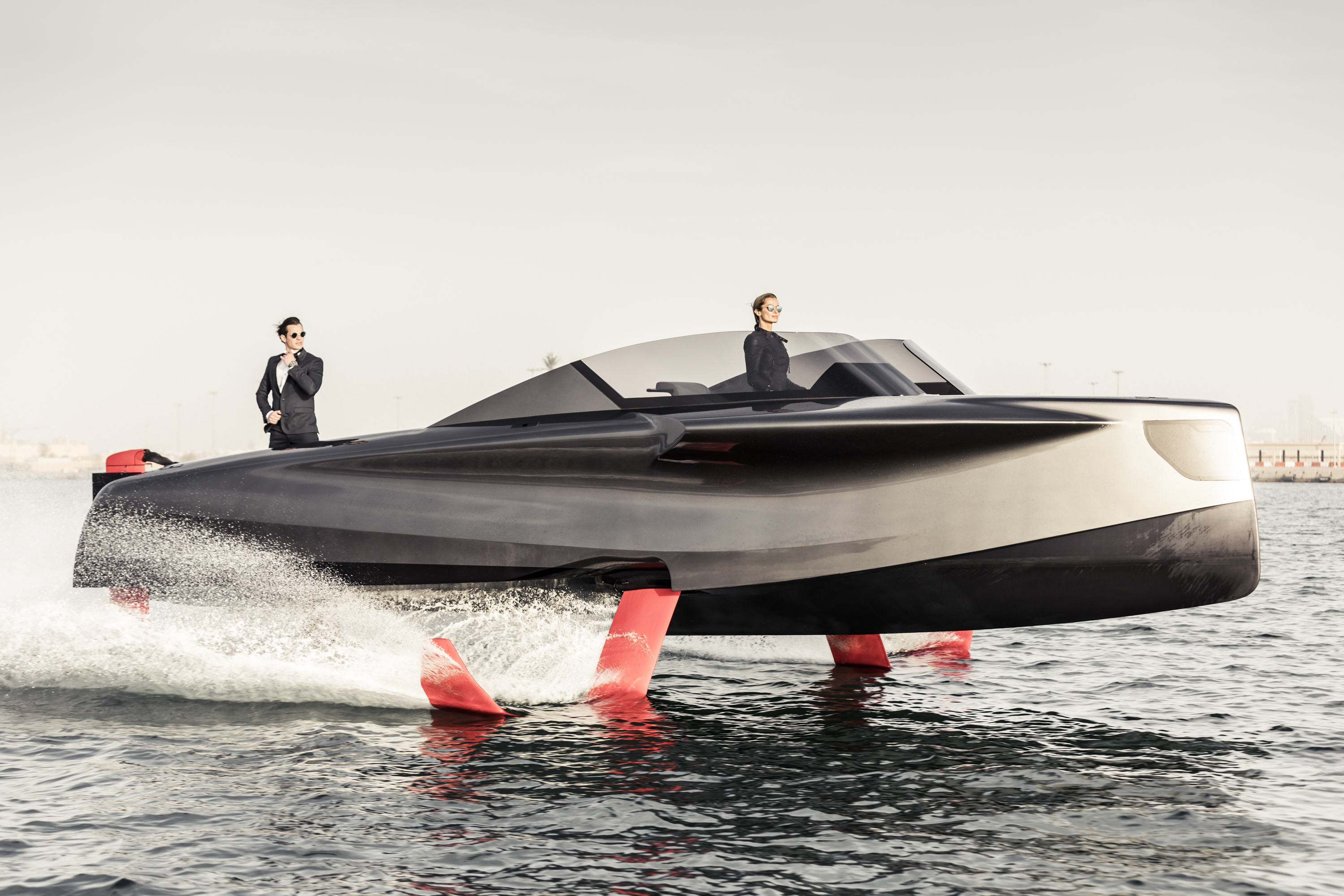 Four foils keep the boat anchored in the water for unprecedented stability and reactivity that heralds the next generation in travel across the waves.
