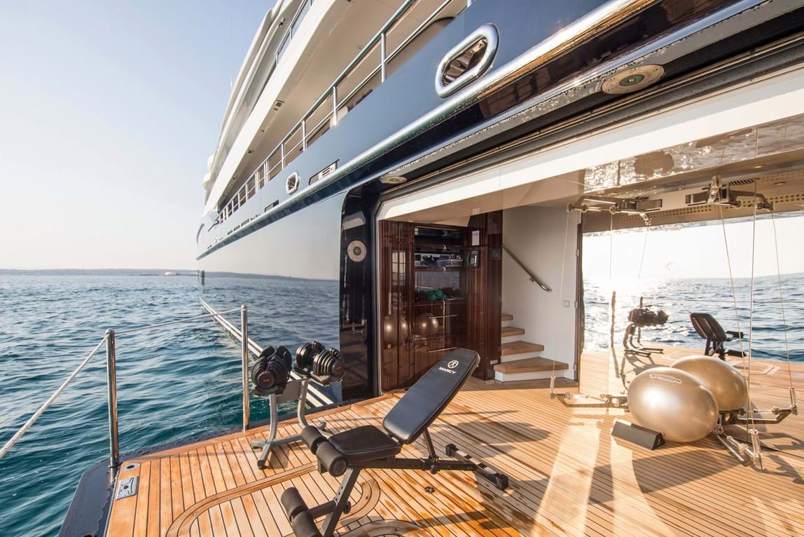 When guests feel the need to wear off excess energy before bedtime, there is a gym in the stern section that can be opened to the elements for workouts while watching the sunset or the moonlight glimmering off the waves.