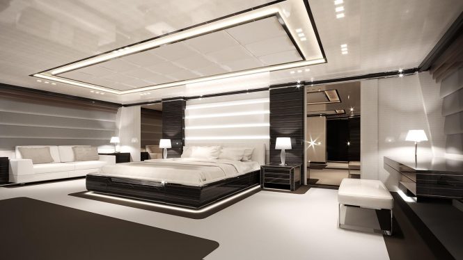O’Matilde features living areas spanned over three decks, with a beam of 9.2m/30ft. She has a draft of only 2.8m/9ft. The accommodation is offered in 7 cabins for up to 14 guests. The owner’s suite is a significant 70sqm/230sqft size, located on the uppped deck. The VIP statroom and a twin cabin are on the main deck, while another twin cabin and three double cabins are on the lower deck.
