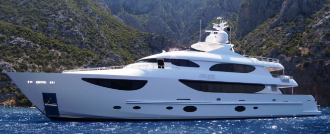 Motor Yacht DREAMER embodies high-quality composite construction, built to full RINA Unrestricted classification. Twin 1,825-hp Caterpillar engines power her to a top speed of 19 knots and cruise speed of 17 knots, making her ideal for harbor hopping in the islands or exploring the posh ports of the Mediterranean.