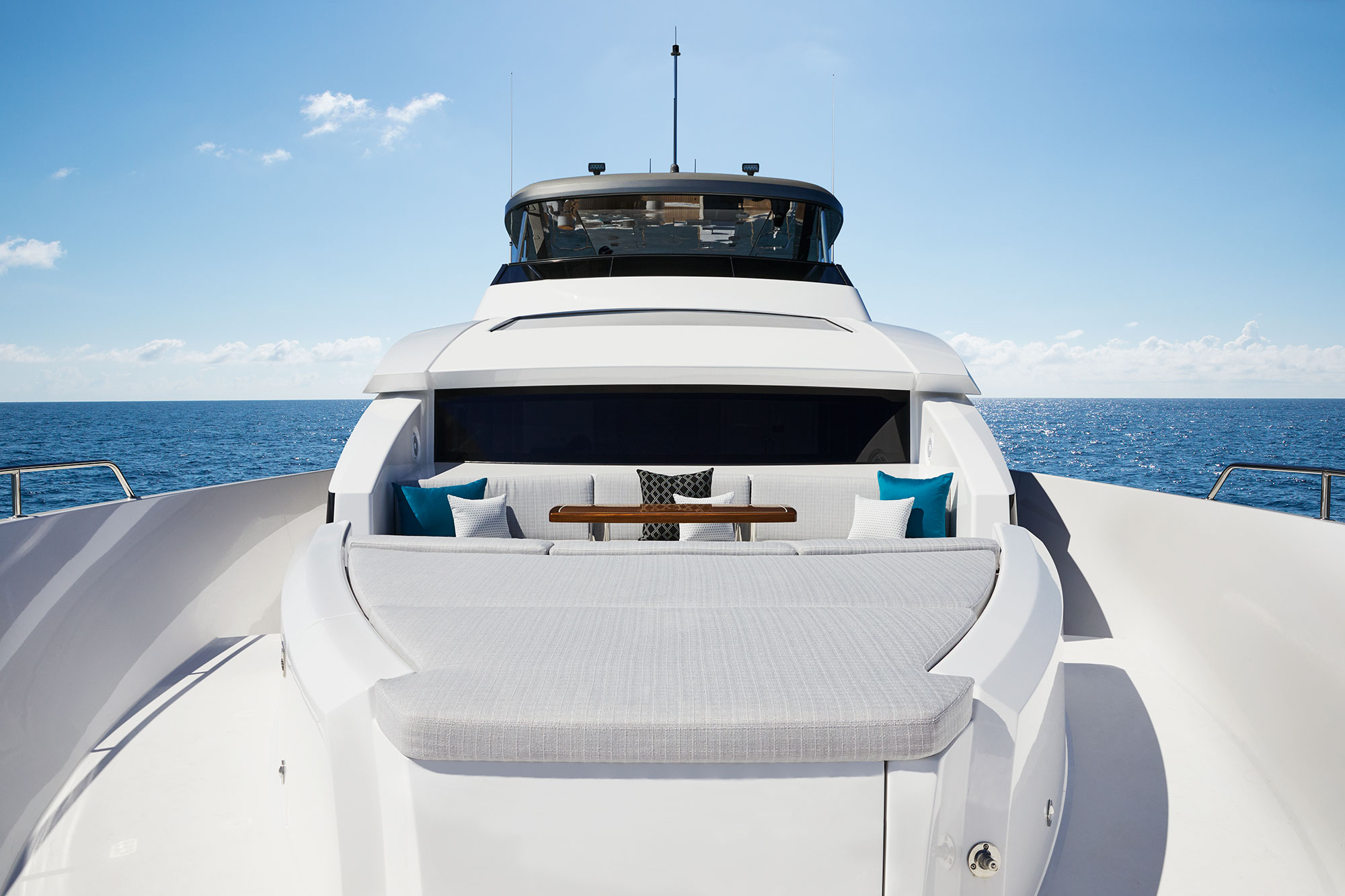 Sunpads and seating on the bow of motor yacht M90 from Hatteras