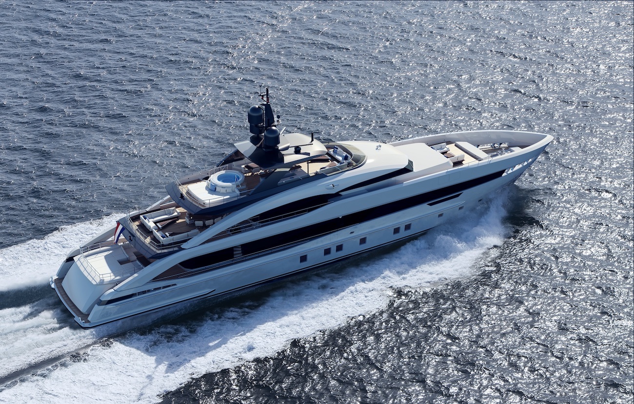 Her brand-new hull was designed in house in collaboration with Van Oossanen Naval Architects offers 12% gain in efficiency thanks to the raised transom and incorporated propeller tunnels in the hull to reduce the draft. The shallow draft of 2.15m allows for the yacht to cruising in shallower waters making her ideal for both the Bahamas as well as the Mediterranean. She will be fitted with two MTU new green oceanic engines with reduced NOx emissions and she will the world’s first fast-cruising yacht below 500GT to be IMO Tier III compliant.