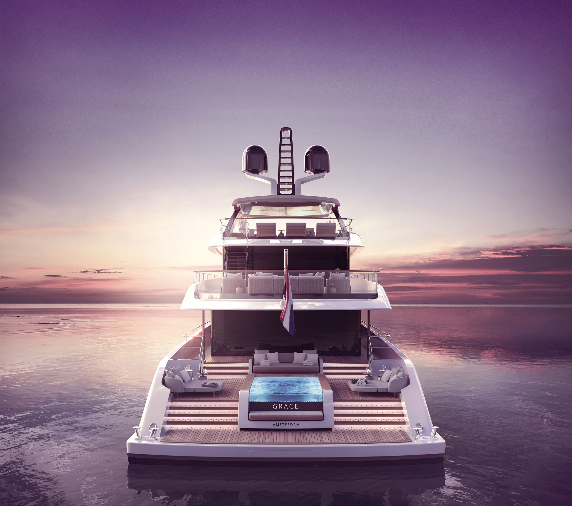 Heesen’s press conference at this year’s Monaco Yacht Show included the unveiling of 49.9m (163’ 8”) superyacht PROJECT GRACE, the shipyard’s brand new 50m Steel superyacht. The creative presentation was accompanied by a live sketching of the yacht’s profile, which was inspired by evocative words like elegance, flow and simplicity, confidence and sporty.