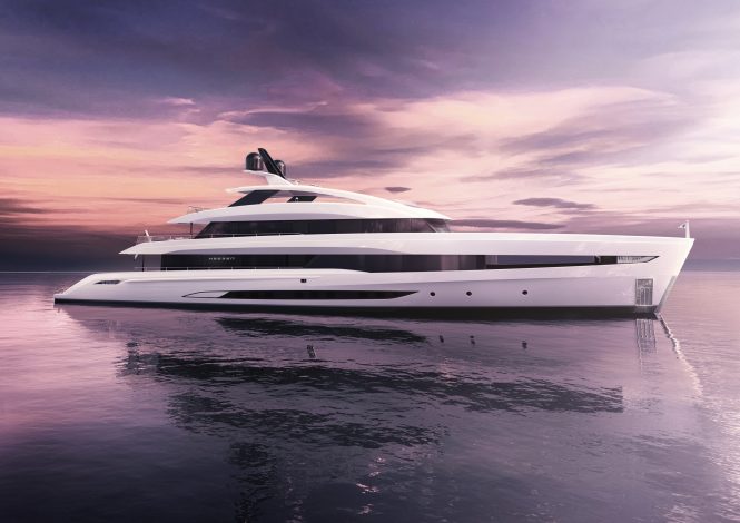 Naval architecture by Van Oossanen complements interior and exterior designs from Harrison Eidsgaard to deliver a steel hull and aluminium superstructure. The yacht will accommodate 12 guests in six staterooms with five additional cabins for nine crew members.